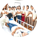 特定技能試験対策として、資格取得後の実技練習を通じて、最低限のスキルを身につけ、即戦力となる人材を目指します。緊張感のある環境の中で専門用語を習得するだけでなく、日本で介護や外食の経験を持つ講師による実技指導も体験します。