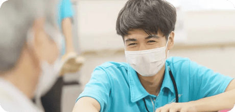 介護の実務研修では、食事、入浴、排泄、移乗などの介助技術を学びます。