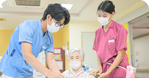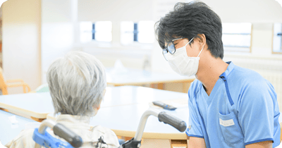 介護の実務研修では、食事、入浴、排泄、移乗などの介助技術を学びます。