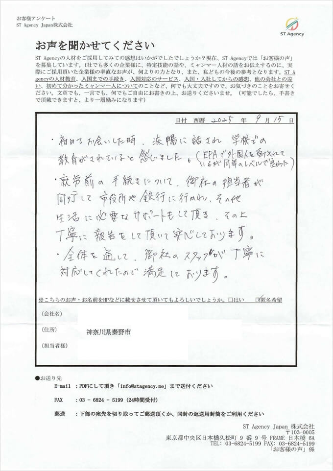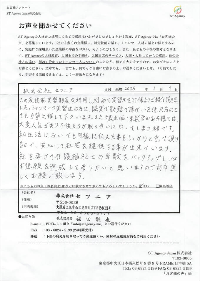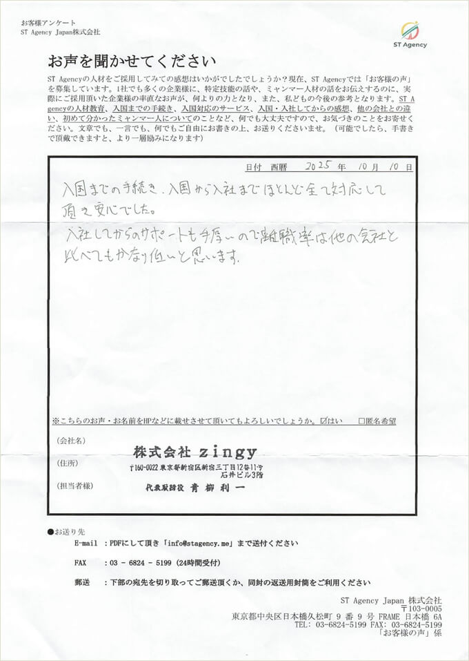 ST Agency Groupでは、自社のミャンマー人ネットワークを活用して、日本在住の特定技能人材の紹介も可能です。